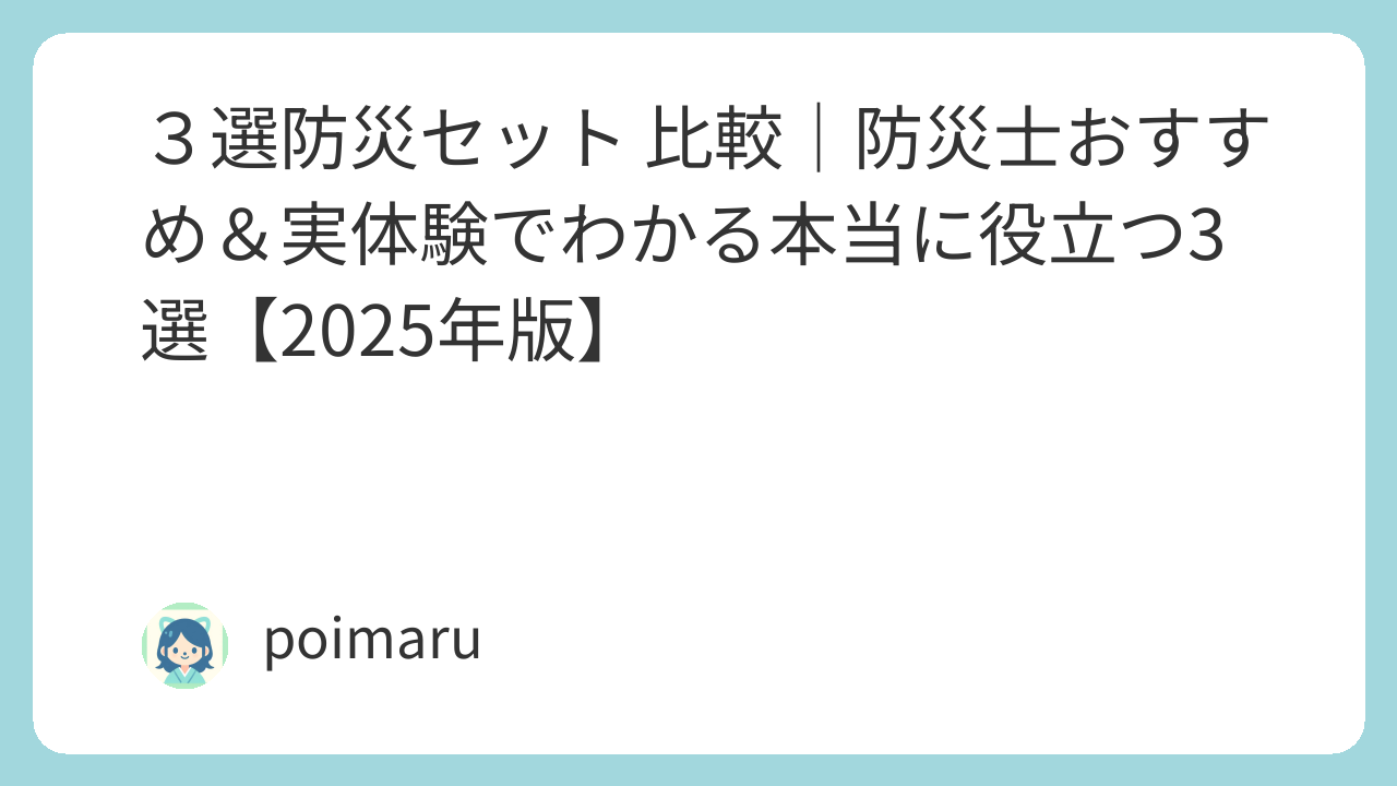 3選防災セット 比較|防災士おすすめ&実体験でわかる本当に役立つ3選【2025年版】